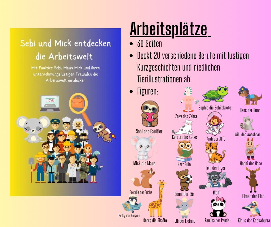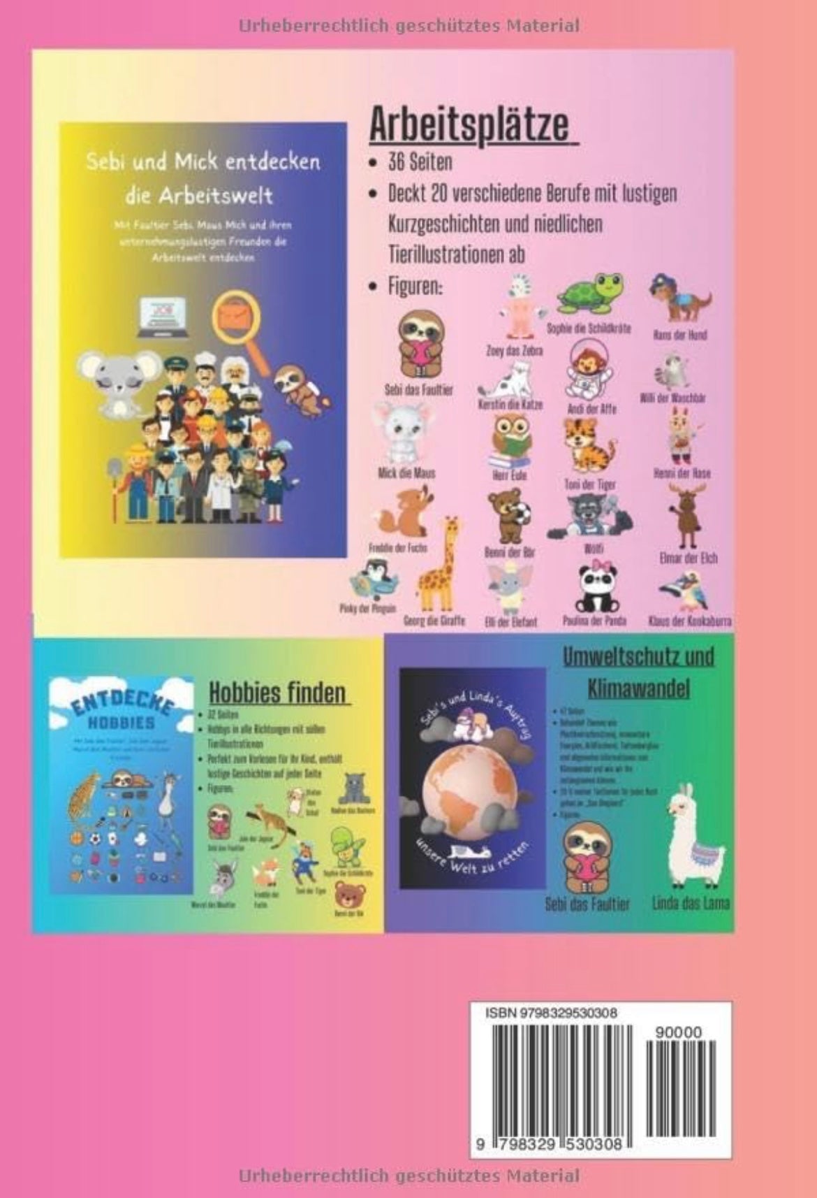 Buch Nummer 2: Begeben Sie sich mit Faultier Sebi, Maus Mick und ihren neugierigen Begleitern auf eine spannende Reise in die Welt zukünftiger Berufe! Gemeinsam entdecken sie die Spannung und Herausforderungen verschiedener Berufe und inspirieren junge Köpfe, große Träume zu haben und endlose Möglichkeiten zu erkunden.